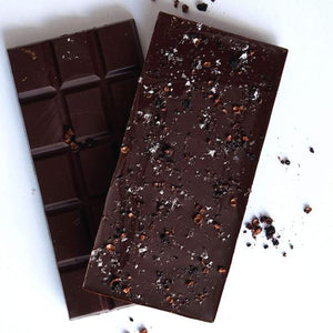 Cocoa mass, Sugar, Cocoa Butter, Natural Vanilla, Pepperberry and Murray River Sea Salt Flakes.